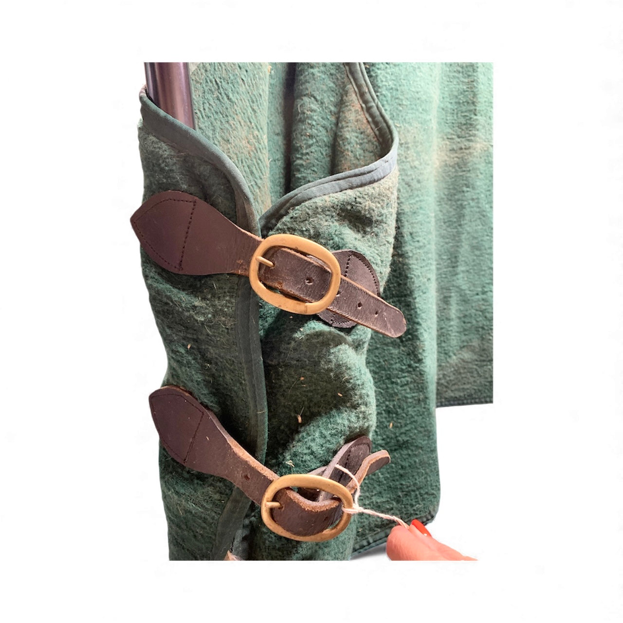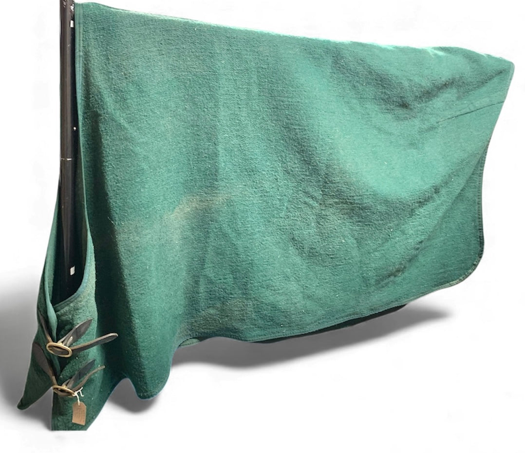 6’0” heavy wool rug with leather straps and brass buckles