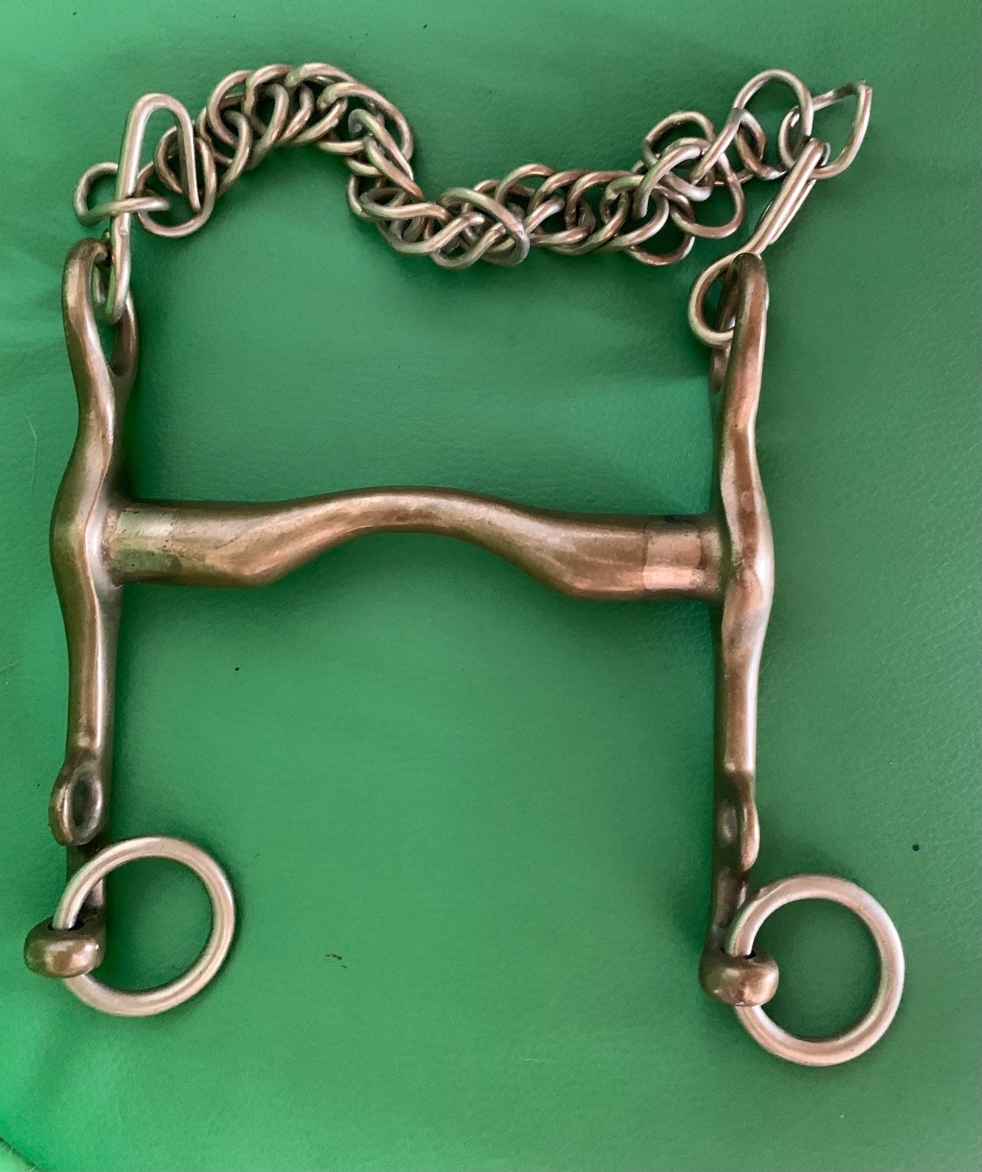 Gold/brass cottage craft 4.5” fixed cheek Weymouth with chain