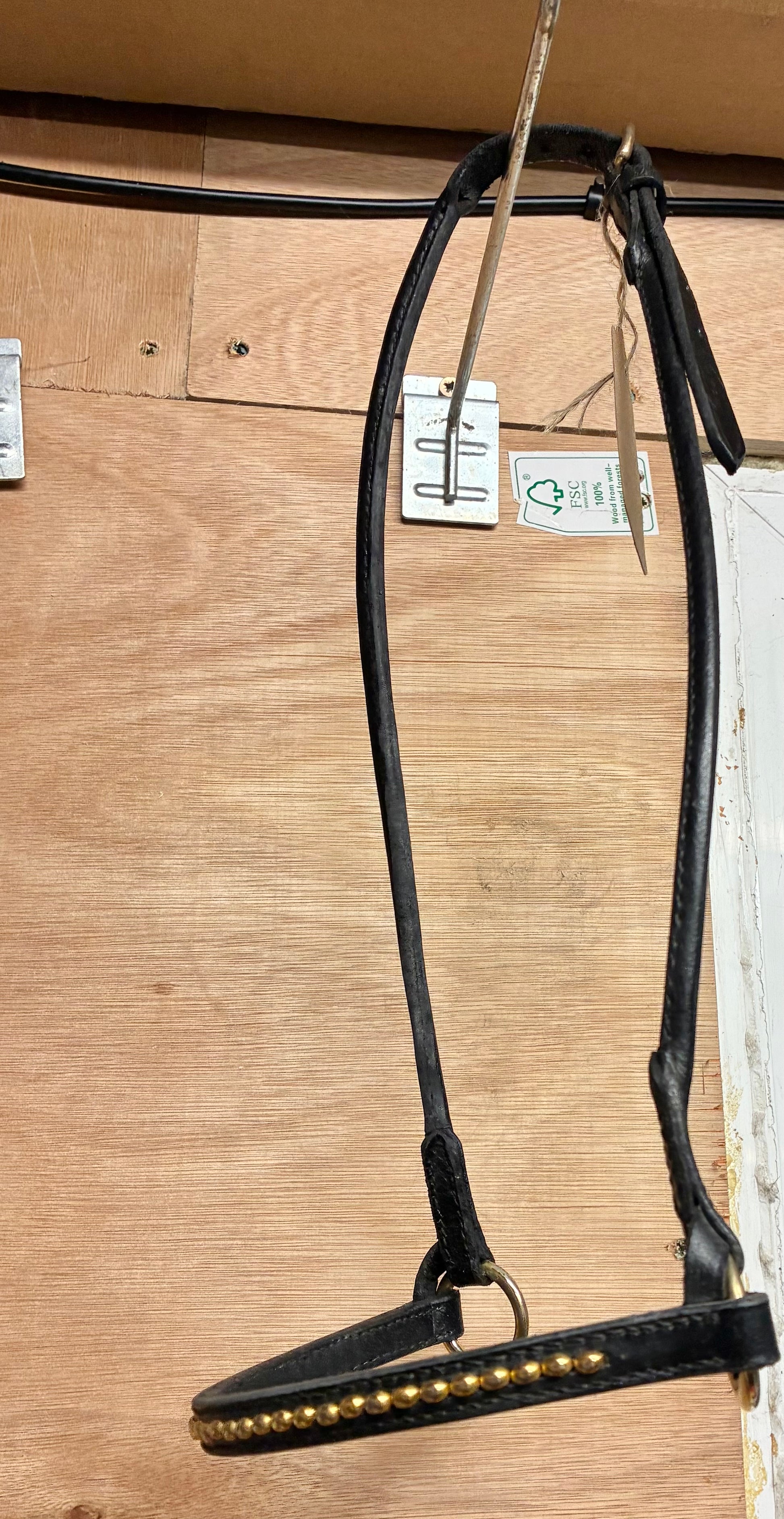 New Black rolled leather in-hand show halter - size Arab Beautiful brass detail to the noseband