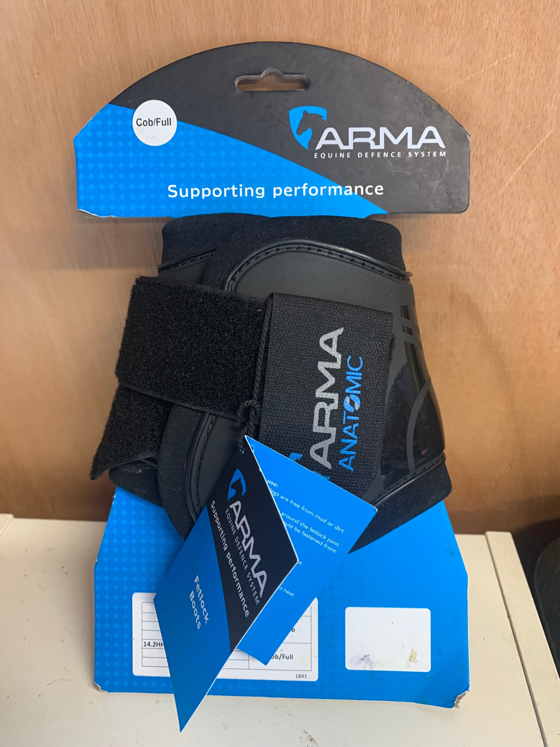 Offering protection to the vulnerable fetlock areas whilst open straps allow the horse to feel his way. The Shires ARMA Open Fronted Fetlock Boots have a flexible, impact resistant hard outer shell to deflect blows on impact.