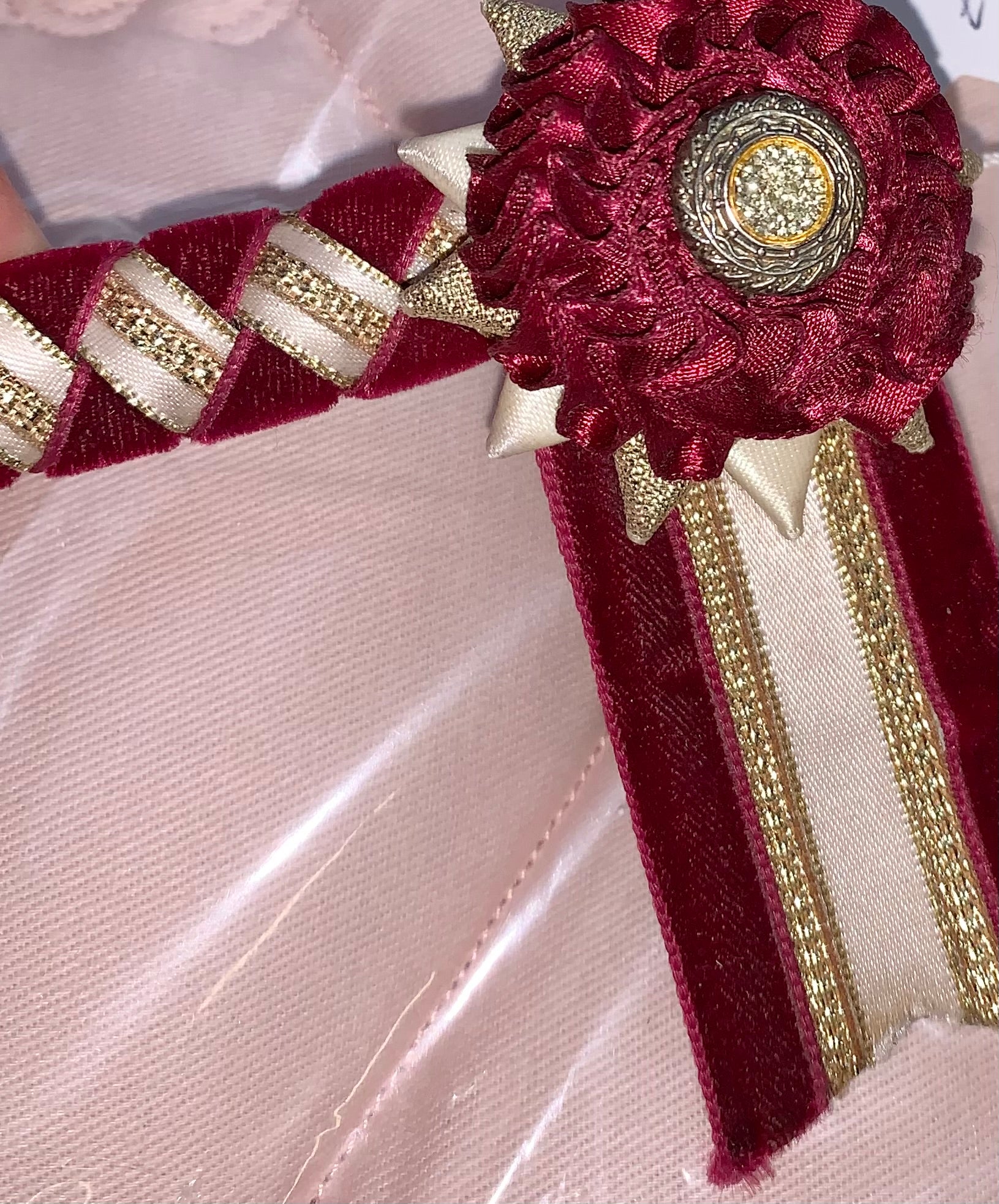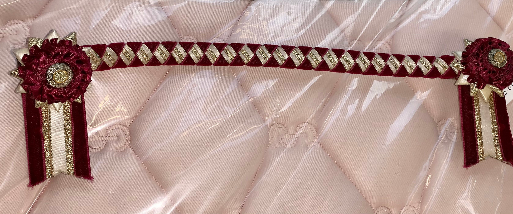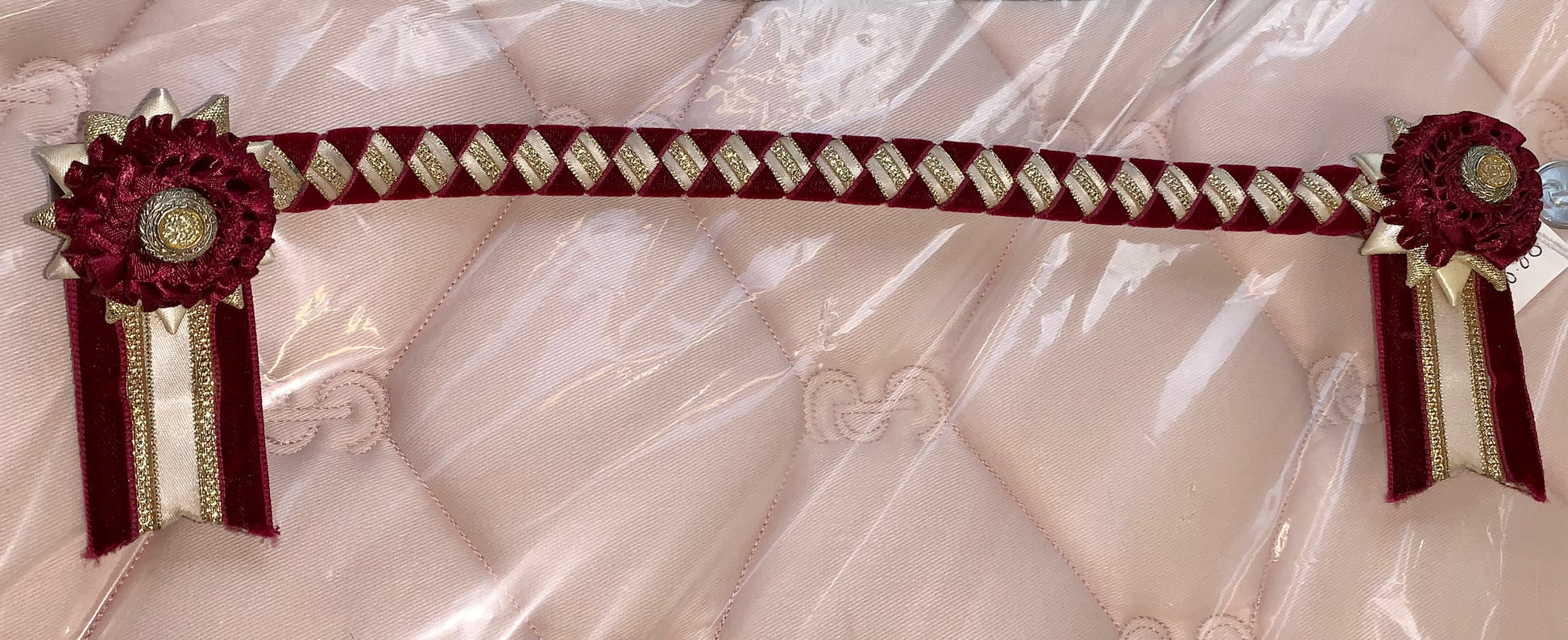 Red/maroon/gold velvet show/christmas browband 14” pony/cob