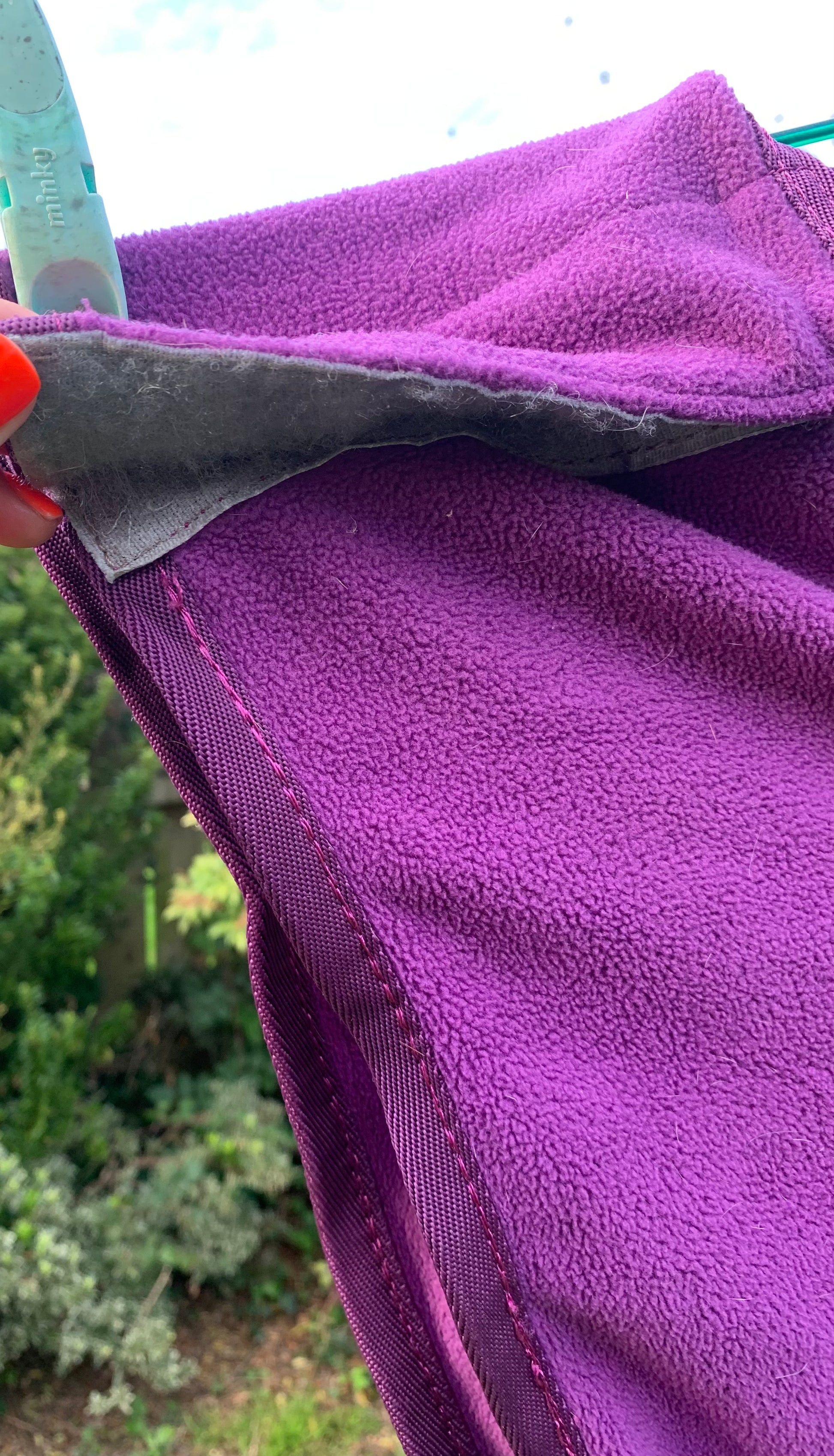 Size large/full (4’ 11”) purple Harrison Howard exercise fleece rug with reflective strips